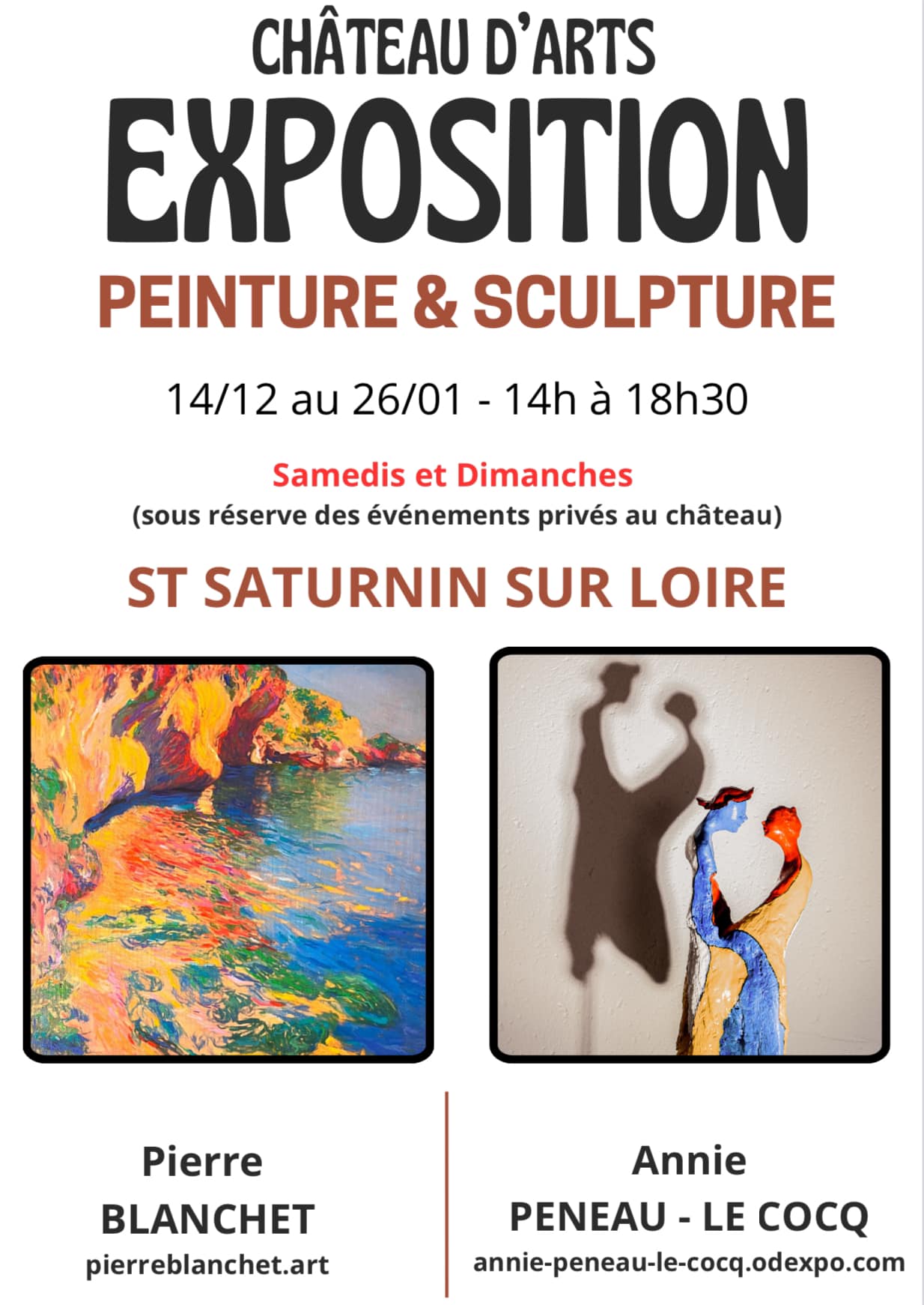 DétailsExposition dans une magnifique salle du Château d’arts à St Saturnin sur Loire, du 14 décembre 2024 au 26 janvier 2025. Exposition conjointe avec les sculptures d’Annie Lecocq