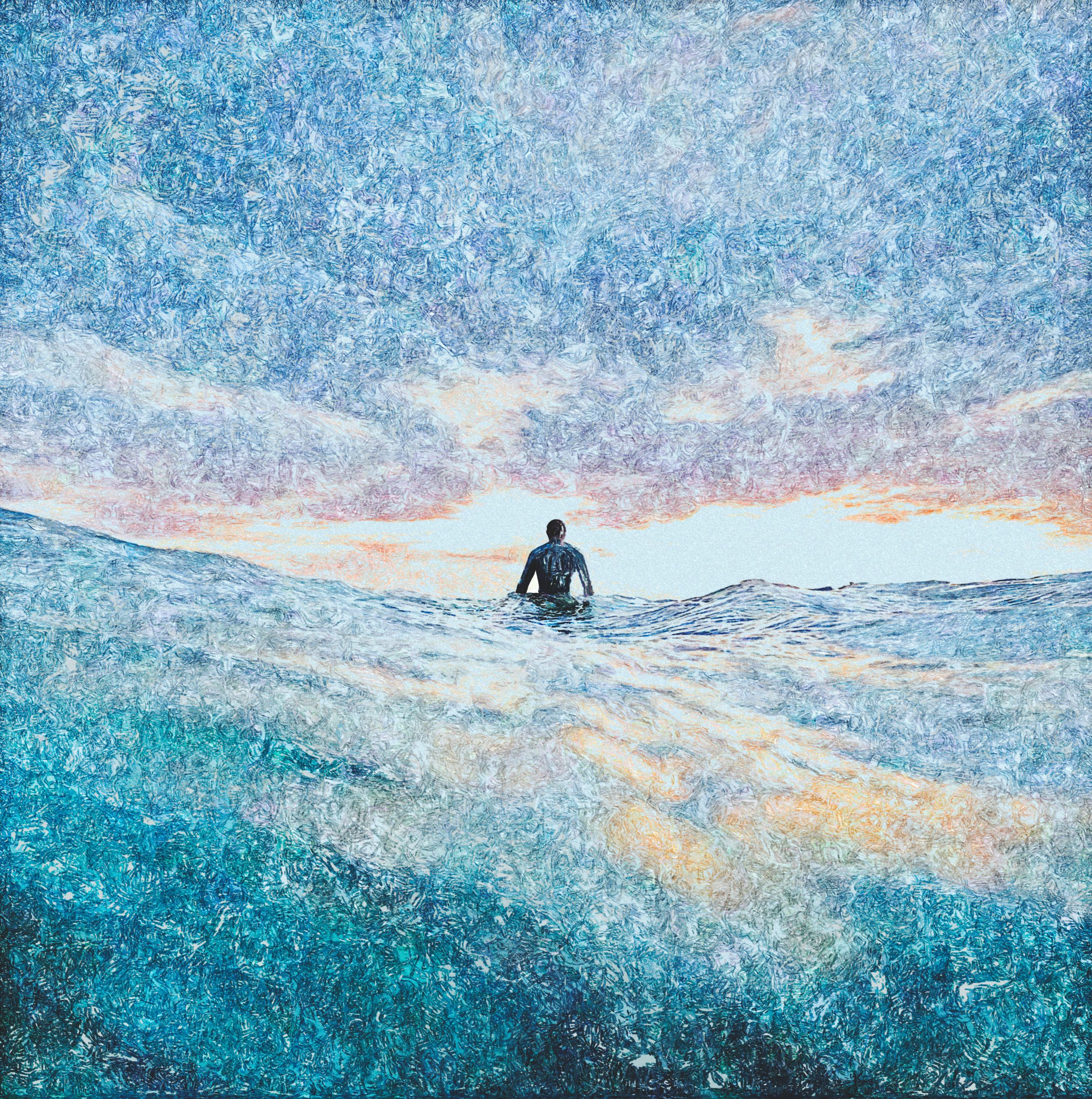 A la surface, le ciel s’ouvre vers notre horizon, toujours, nous flottons seuls entre deux eaux, sans repères. L’horizon nous donne autre chose qu’un repère, le besoin de l’action, l’objectif et la vie.